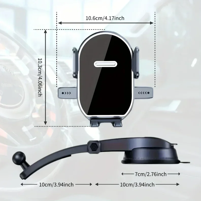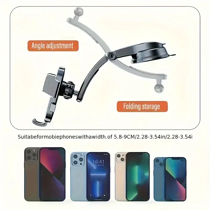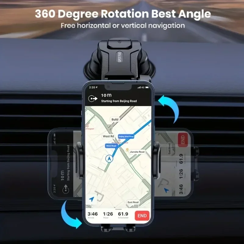 Adjustable Car Phone Mount with ABS Frame & Strong Suction Base - 360° Swivel Dashboard Cradle, Anti-Shake/Slip Design